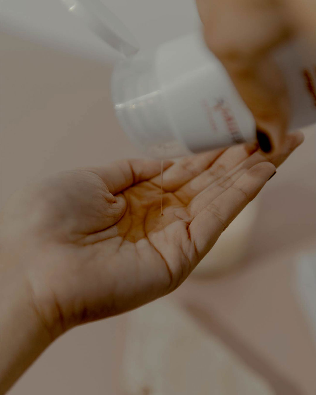 倒出少量於手心上,潔淨私密處外部。沖洗乾淨,如常拭乾。